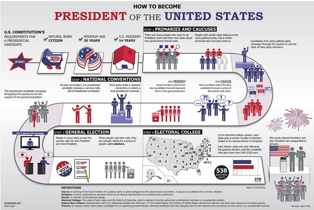 - Avoir au moins 35 ans (pas d’âge maximum), d’où l’impossibilité pour la jeune et dynamique Alexandria Ocasio-Cortez de candidater