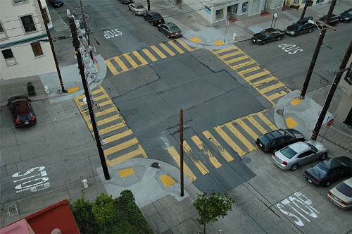 En Europe, vous vous arrêtez au feu, c’est-à-dire au niveau exact du feu. Aux US, les feux sont positionnés de l’autre côté de l’intersection. Si vous vous arrêtez au feu, c’est que vous êtes… au beau milieu de l’intersection ! A évite. Des lignes blanches marquent l’endroit où s’arrêter et selon les règles, vous devez pouvoir voir ces lignes blanches depuis votre point d’arrêt.